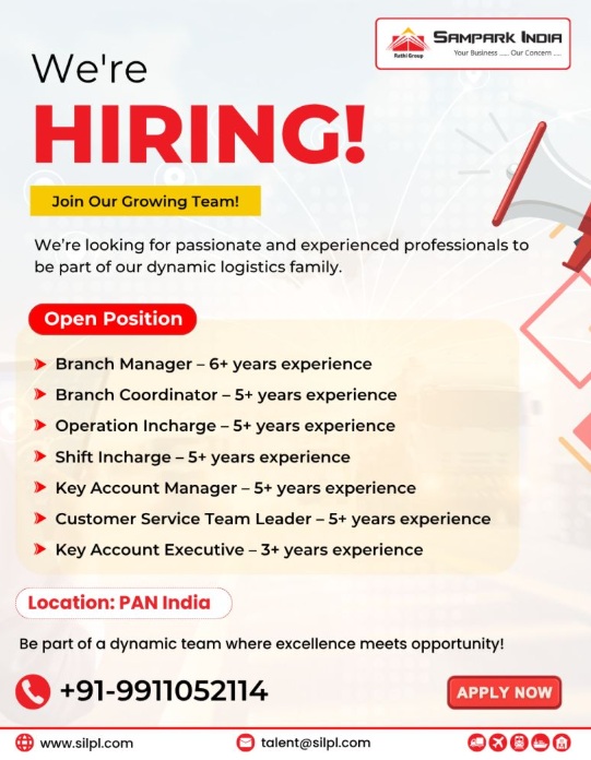 Please submit your CV to [email protected] or WhatsApp us at 9350204072.